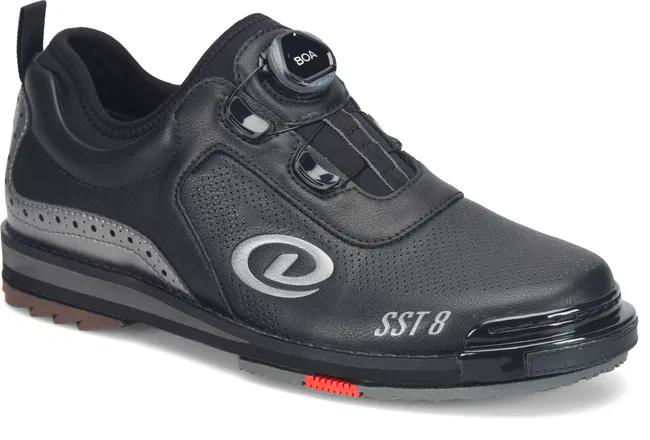 Crafted to elevate your game, the Dexter Mens SST 8 BOA MC shoe combines cutting-edge technology with sleek design for the ultimate bowling experience. At the heart of the SST 8 BOA MC lies Dexter's patented SST technology, offering unparalleled interchangeability to meet the demands of every bowler. Whether you're fine-tuning your approach or perfecting your release, this shoe adapts effortlessly to your needs. It's not just about functionality – the SST 8 BOA MC boasts a cool silhouette and refined good looks that command attention on the lanes. Its leather toe drag protection technology ensures durability, while the BOA disc lace system provides unmatched adjustability for a personalized fit with every wear. Step into comfort with the form-fitting neoprene bootie construction, wrapping your foot in a cozy, sock-like embrace that enhances your agility and control. Plus, with microperfing vents strategically placed on the upper, airflow is optimized, keeping you cool and focused throughout your game.