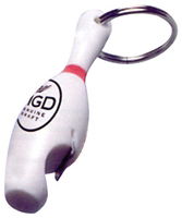 3" bowling pin keychain that doubles as a bottle opener.