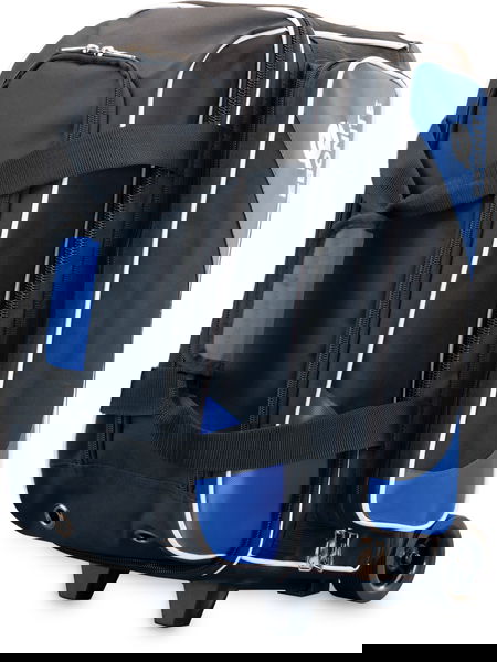 The Ebonite Transport Double roller bag has lots of features you will love! This bag is equipped to conveniently carry 2 bowling balls with a large front shoe compartment, larger sized zippered accessory pouch, plus 3" molded groove plastic wheels!