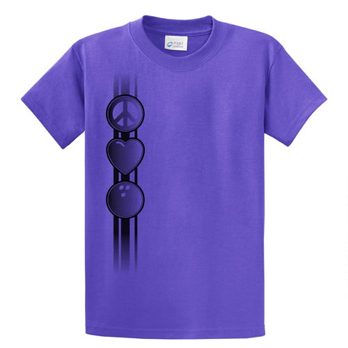Exclusive bowling.com Peace/Love/Bowl TShirt Purp