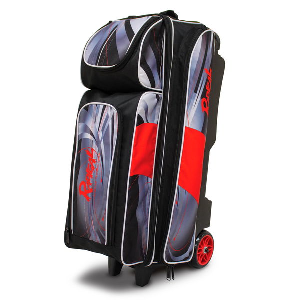 Radical brings you the premium design of the Triple Roller featuring dye-sub fabric and the classic red & black colors! This bag offers the convenience of a large ball compartment for 3 bowling balls, separate shoe compartment, and 3 large accessory zipper pockets for all your Radical gear!