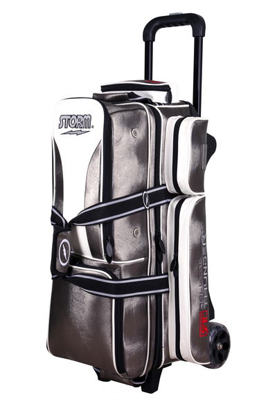 Storm Rolling Thunder 3 Ball Roller Signature Platinum Storm has taken their proven high performance 3 ball roller and upgraded the materials to achieve prestige and durability. The Storm Rolling Thunder 3 Ball Roller Signature bag holds nothing back in the style department. This bag has all the high tech features of the Rolling Thunder bags but Storm takes it up a notch in the materials used for this signature bag.