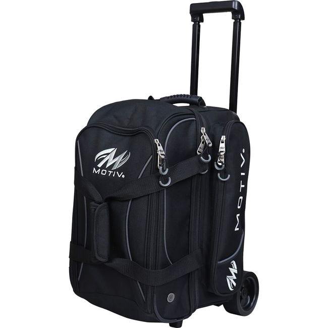 Take your game on the road with confidence. The MOTIV Velocity 2-Ball Roller is built for bowlers who want durability, smooth mobility, and smart storage—all in a sleek, dependable design. Whether you're heading to league night or traveling for tournaments, this bag delivers the performance you expect from MOTIV. Features include 2 spacious accessory pockets, huge shoe compartment fits up to men's size 15 shoes, strong telescoping handle with quick-release button on the grip, and oversized 4" wide stance wheels for mturdy, smooth-rolling.